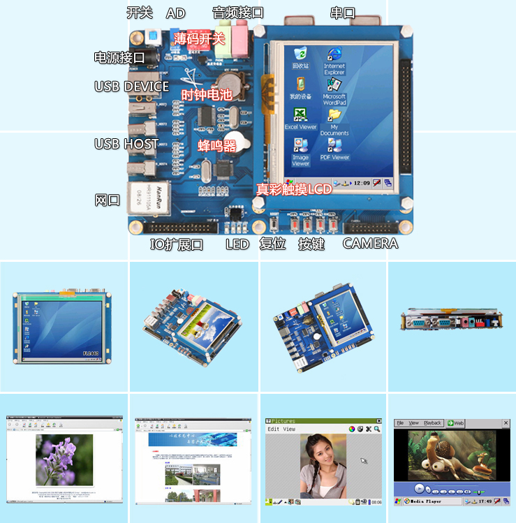 - 备注:独有的硬件选择启动系统方案:开发板为Linux和Wince双系统,可直接通过拨码开关进行硬件选择启动的操作系统。这样操作更加方便,也可使初学者朋友深入掌握硬件切换操作系统的方法。
